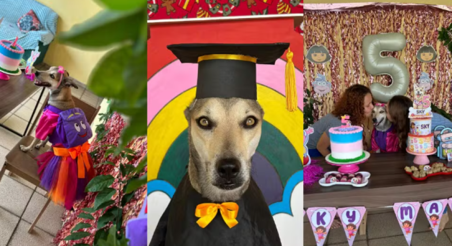 A empresária Jhessica Oliveira da Costa compartilhou nas redes sociais as regalias da cadelinha Sky Maria, de 5 anos, que tem quarto com banheiro exclusivo, guarda-roupa, sofá, roupas e até um livro que conta sua própria história. Sky foi adotada em 2022 após ser resgatada de maus-tratos, em estado avançado de desnutrição.