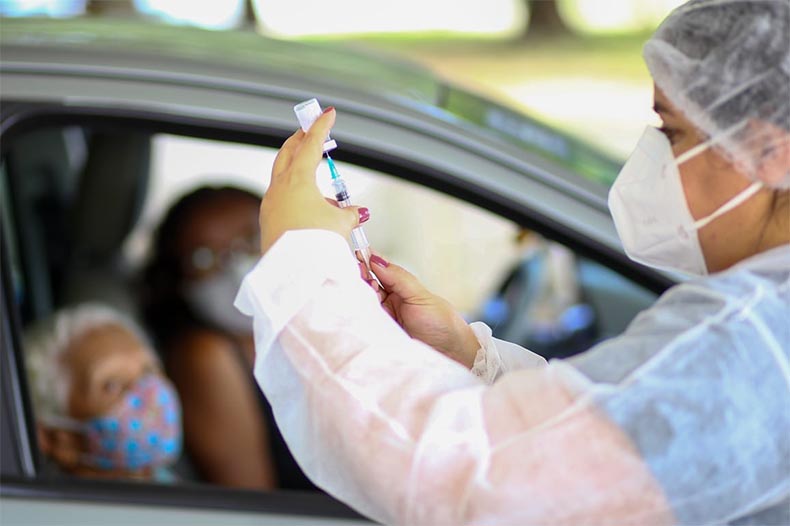 “Com a 1ª dose foram 78.744 vacinados o equivalente a 9,1% e com a segunda dose a vacina foi aplicada em 21.579 pessoas, equivalente a 2,5%. Os dados são da Diretoria de Atenção Básica (DAB)”, diz.