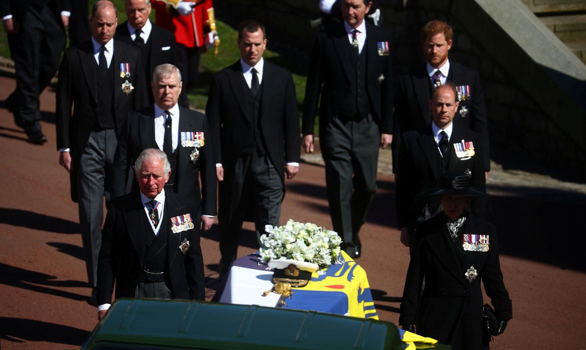 A rainha Elizabeth e sua família prestaram suas últimas homenagens ao príncipe Philip em um funeral neste sábado (17) que exaltou seu legado internacional e sete décadas de serviço, e deu aos netos William e Harry a chance de falar em público, pela primeira vez, desde que as alegações de racismo geraram uma crise na família.