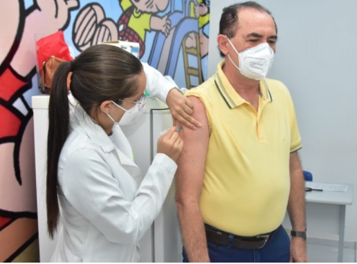 O vice-prefeito, Antônio Reis (64 anos), tomou sua primeira dose da vacina contra a covid-19 na unidade de saúde Viana de Carvalho na manhã de hoje. Ele esteve acompanhado do secretário James Rodrigues. Antônio Reis destacou a organização da vacinação em Floriano e fez um pedido aos florianenses que ainda não tomaram a segunda dose. “A proteção só está completa com a segunda dose. Hoje tomo a primeira e já estou ansioso para a segunda dose da vacina”, disse.