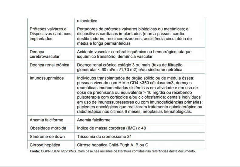 - Pessoas com síndrome de down a partir de 18 anos