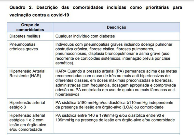 AS COMORBIDADES  CONSIDERADAS PRIORITÁRIAS SÃO: