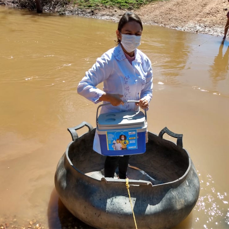 Em entrevista ao Cidadeverde.com, Jandira conta que a travessia foi realizada no sábado (22) e que esta foi a segunda vez que ela atravessou o rio em uma cocheira de pneu para vacinar idosos contra a Covid-19.