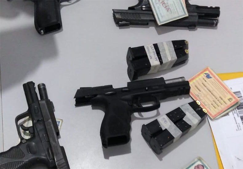Pistolas.40 pertecentes à Polícia Militar do Maranhão e carros usados para dar suporte ao grupo foram apreendidas.