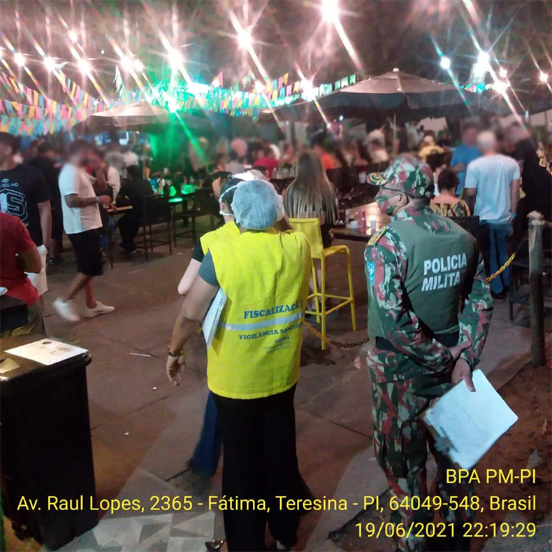 Equipes da Vigilância Sanitária monitoravam o cumprimento das medidas sanitárias na zona Leste de Teresina quando flagraram uma festa junina dentro de um estabelecimento privado na Avenida Raul Lopes. A gerente de Vigilância Sanitária, Larisse Portela, conta que no local ocorreu o “total desrespeito ao que estamos vivenciando” diante da pandemia da Covid-19, com vários hospitais lotados por infectados. Somente nas últimas 24 horas, o Piauí registrou 373 casos de covid-19 e 13 óbitos pela doença.