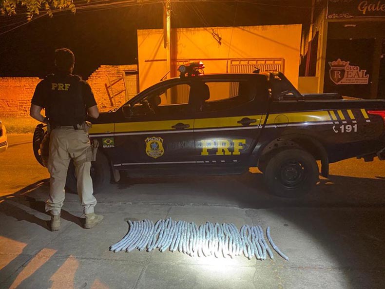 Dois homens, de 29 e 52 anos, foram presos pela Polícia Rodoviária Federal (PRF) com 48 unidades de explosivos em gel escondidos dentro de um fundo falso de um veículo. A ação ocorreu no último sábado (31), no município de Valença do Piaui, distante 210 quilômetros de Teresina.