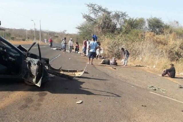 Um grave acidente aconteceu na manhã desta quarta-feira (08), no entroncamento da PI-140 no trecho entre os municípios de Flores e Rio Grande do Piauí. O acidente envolveu dois carros, um Corsa e uma caminhonete Hilux. O flagrante foi enviado pelo internauta @jordelsonantunes que relatou pelo menos duas vítimas, uma delas em estado grave com fratura exposta na cabeça. Os envolvidos foram encaminhados o Hospital Tibério Nunes.