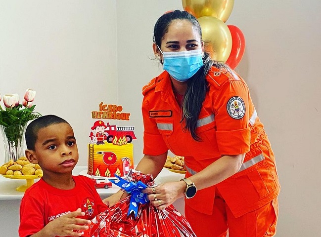 O menino Ícaro, de 4 anos, sempre mostrou admiração pelo Corpo de Bombeiros e nesta quinta-feira (23), recebeu uma visita especial quando vários profissionais do batalhão de Floriano. Os bravos combatentes fizeram uma surpresa ao garoto que ficará marcada para sempre na sua vida. A irmã de Ícaro, Vitória, explica que mesmo diagnosticado com espectro autista e arritmia cardíaca, ele sempre demonstrou muita inteligência e perspicácia. "Semana passada ele passou mal e no hospital ele me fez esse pedido: Mãe, vou ficar bom logo pra conhecer os Bombeiros. Postei no @floridepre e eles entraram em contato comigo. Fizeram uma festa completa com bolo, refrigerante, salgado. Foi um dia muito especial", disse.