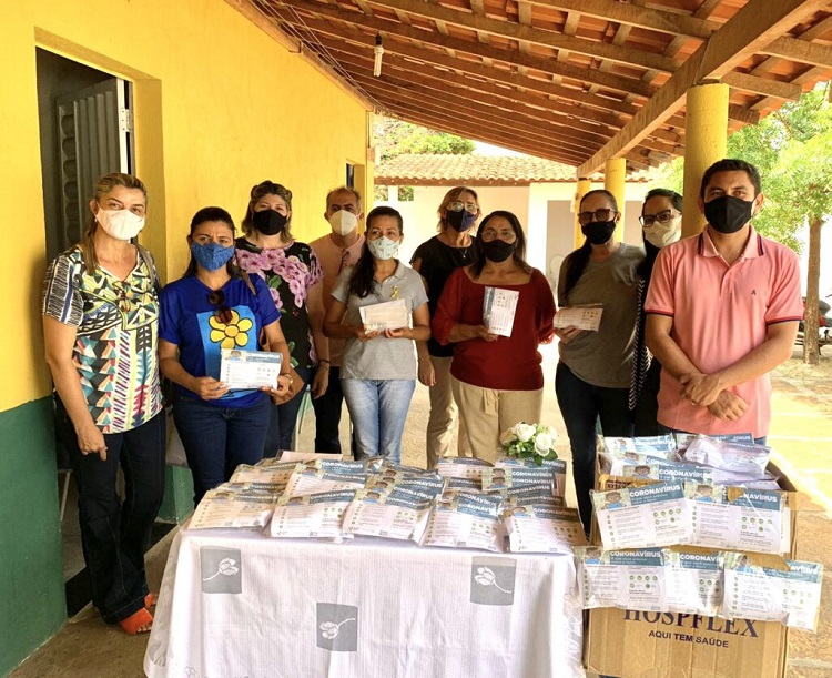 A entrega de kits contendo álcool em gel, máscaras e folders educativos para mais de 4 mil alunos foi feito formalmente pela secretária de Saúde, Dra. Maria Teresa, à secretária de Educação, professora Sônia Lira. Escolas pactuadas ao Programa Saúde na Escola também receberam vídeos educativos de prevenção ao coronavírus.