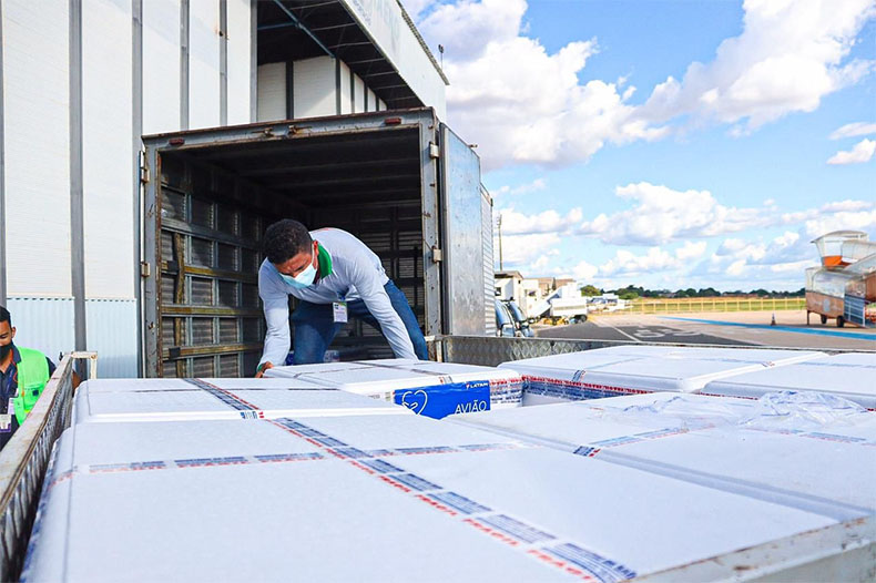 Desembarcou no aeroporto de Teresina, na tarde desta segunda-feira (16), mais uma remessa de vacinas contra a Covid-19, destinada ao estado do Piauí.