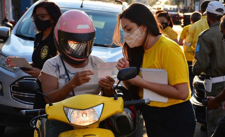 quarta-feira (06), uma intervenção educativa no Centro de Floriano. A blitz contou com apoio do 3º Batalhão da Polícia Militar de Floriano.