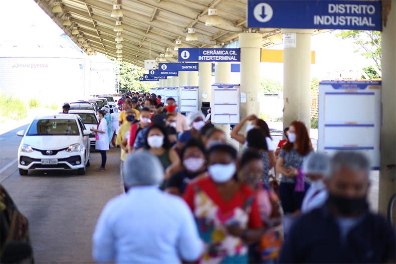 Pontos de vacinação drive-trhu contra a Covid-19 em Teresina registraram longas filas na manhã desta terça-feira (12). A lotação aconteceu, inclusive, nos locais onde houve agendamento.