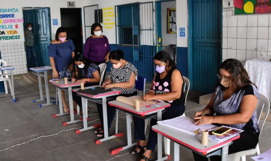Participaram da oficina, 5 professoras que serão as multiplicadores aos alunos, o intuito é que as professores repassem o conhecimento e os alunos possam utilizar materiais caseiros, que seriam desperdiçados podendo virar arte.