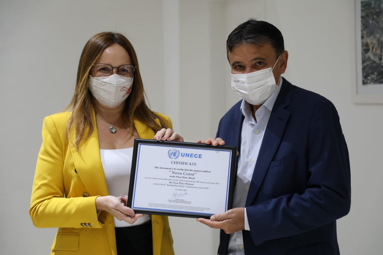 O governador Wellington Dias recebeu nessa sexta-feira (10), das mãos da superintendente de Parcerias e Concessões, Vivianne Moura, o certificado emitido pela Organização das Nações Unidas (ONU), que considerou a Nova Ceasa de Teresina a melhor PPP do mundo. O prêmio internacional, para o governador, confirma o bom ambiente de negócios e investimentos que o Piauí representa hoje. “É algo que coloca o Piauí, como ele já é, entre os lugares do mundo que tem melhores experiências, com bons resultados e principalmente com esta integração com o social, cultural, gerando emprego e renda” considerou.