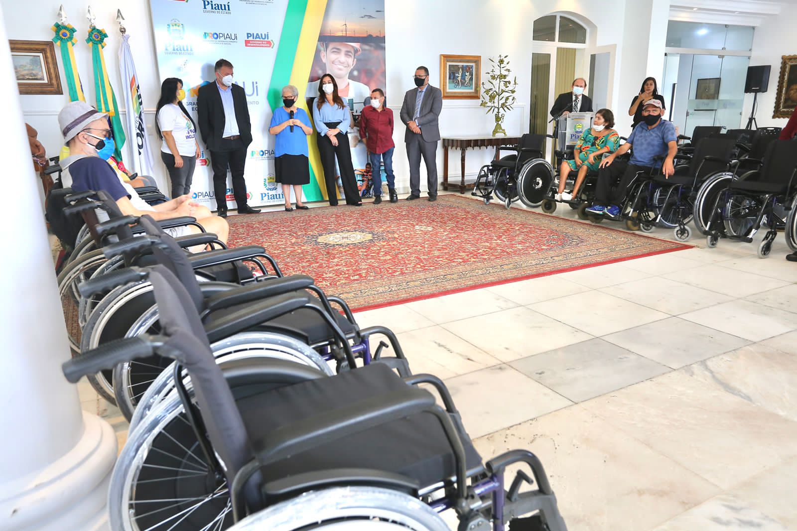A Secretaria de Estado para Inclusão da Pessoa com Deficiência (Seid) realizou nesta sexta (21), no Palácio de Karnak, a entrega simbólica de 50 cadeiras de rodas para a Associação dos Deficientes Físicos de Teresina (Adeft). A ação acontece dentro do projeto Vidas Sobre Rodas, criado pela Seid, e os recursos para a aquisição das cadeiras são oriundos de emenda parlamentar do deputado estadual Carlos Augusto.