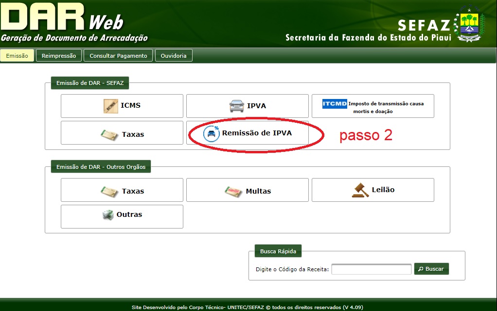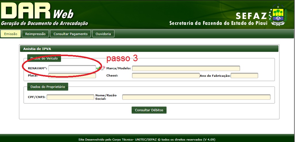 Para aderir ao Refis é fácil. Basta acessar o site da Sefaz (https://portal.sefaz.pi.gov.br/) e clicar em darweb. Em seguida escolha a opção remissão de IPVA. Na tela seguinte coloque o Renavam do veículo e clique em consultar débitos. Em seguida é só confirmar os valores e imprimir o boleto.