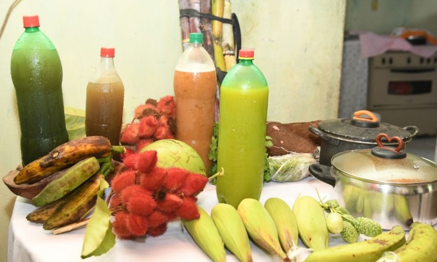 Foram dona Luzia e seu Adelmar, moradores da comunidade Vereda dos Cágados, quem receberam a equipe da prefeitura e prepararam uma mesa farta com um pouco de tudo o que produzem, como bolo de arroz, pão caseiro, pão de queijo, buchada de bode, caldeirada de tilápia, macaxeira cozida, caldo de cana, sucos e outros alimentos.