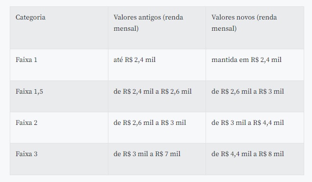 Cada faixa tem subsídios e programas diferenciados. Segundo o Conselho Curador do FGTS, a atualização das faixas de renda tem como objetivo destravar o programa habitacional e melhorar as condições para as construtoras, pressionadas pelo aumento dos custos, pelos juros altos e pela inadimplência.