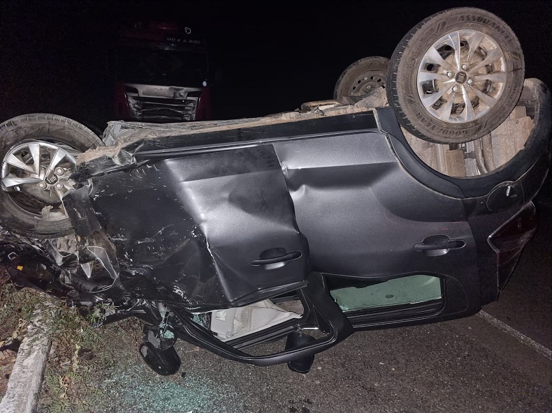 O condutor do carro de passeio sofreu lesões graves e não foi identificado. O condutor da carreta, de 40 anos, saiu ileso.