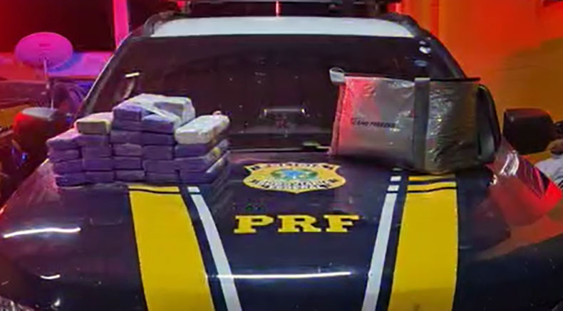 Segundo a PRF, a equipe durante o procedimento realizou uma busca minuciosa no compartimento de carga no interior do veículo. A droga foi localizada dentro de uma bolsa térmica atrás das últimas poltronas.
