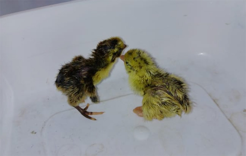"Era por volta da 16h quando eu e um funcionário escutamos os piados. Aqui vendemos ovos de galinha e de codorna e fomos na prateleira olhar. Identificamos de onde vinha o barulho e ao abrir a cartela nasceram quatro codorninhas. Elas estavam lá dentro imprensadas e ao abrir foram saindo", conta Fábio Gomes, gerente do mercadinho, que registrou o nascimento dos pintos.