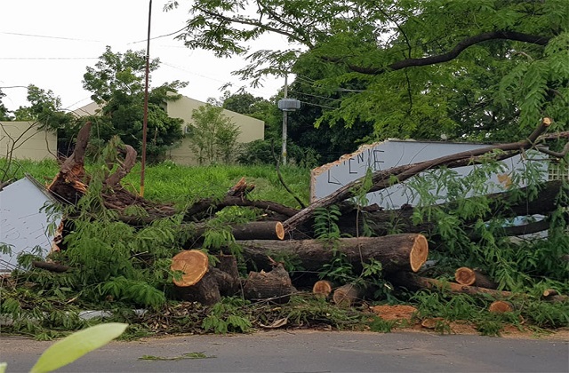 A tempestade derrubou a torre da rádio, que está fora do ar. Também derrubou árvores, com danificação do muro em três pontos.