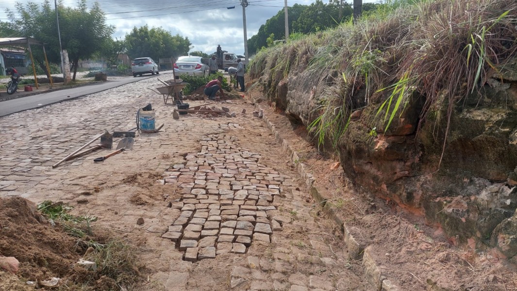 As equipes também passaram por duas ruas no bairro Tiberão, onde foram reimplantados 19 metros de meio fio e recuperados 34,7 metros quadrados de calçamento na Rua João Gonçalves, além da recuperação de 40,04 metros quadrados de calçamento na Rua Tiago Roque.