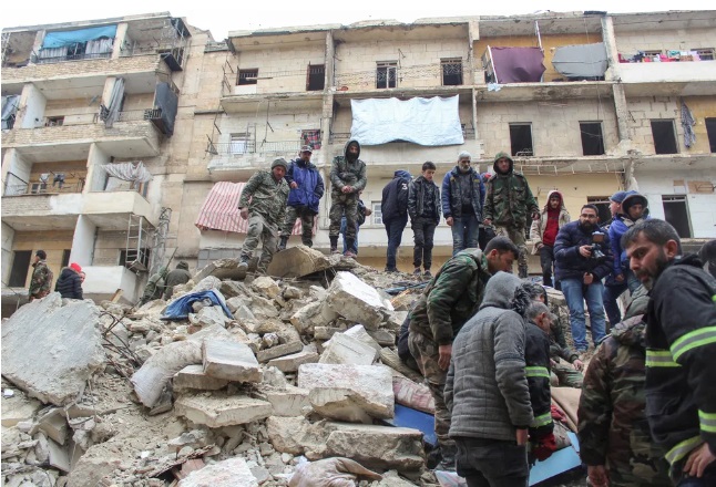 Eles estavam dormindo no quarto de hotel em Alepo quando foram acordados pelo tremor.