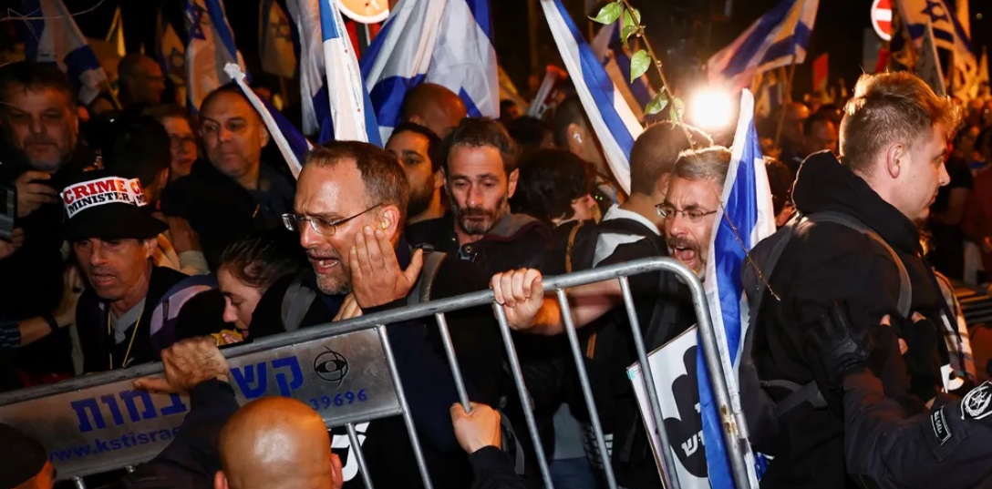 Confrontos violentos ocorreram nesta quarta-feira (1º), em Tel Aviv, entre a polícia e manifestantes que denunciavam o "caráter antidemocrático" da reforma judicial impulsionada pelo governo de Benjamin Netanyahu, o mais à direita da história de Israel.