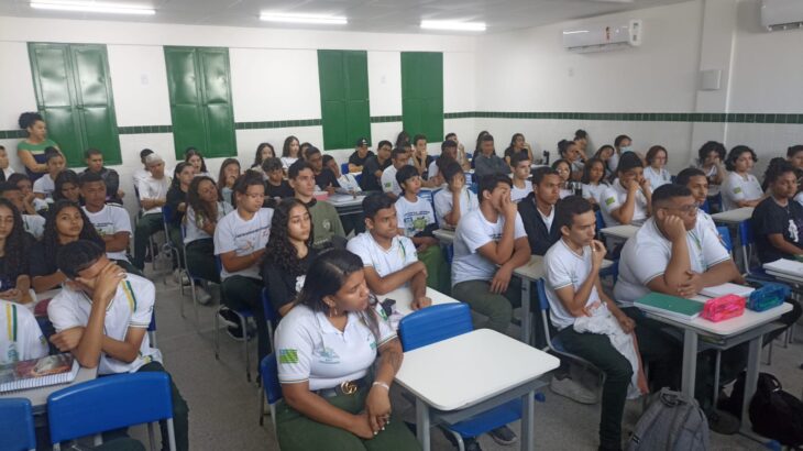 A visita ao centro educacional contou com a presença da diretora da Unidade de Ensino e Aprendizagem da Seduc, Maria José Mendes Neta; da gerente da 21ª Gerência Regional de Educação (GRE), Clarisse Veloso; e do coordenador das Escolas de Tempo Integral da Seduc, Alberto Machado.