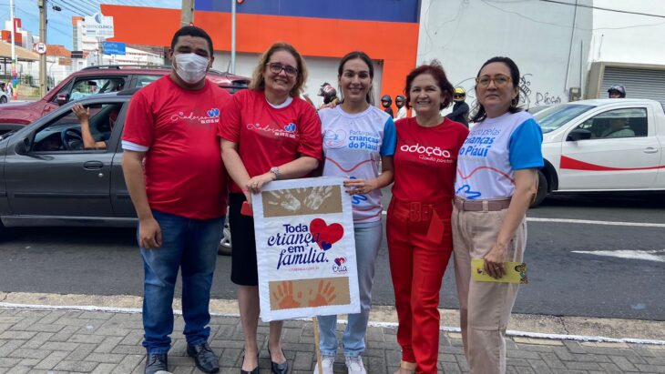 A coordenadora do Pacto pelas Crianças do Piauí e primeira-dama do Estado, Isabel Fonteles, participou nesta quinta -feira (25), no Dia Nacional da Adoção, de uma movimento de divulgação para dar mais visibilidade a causa da adoção, realizado pelo Centro de Reintegração Familiar e Incentivo à Adoção no Piauí (CRIA) em parceria com o Governo do Estado e a 1ª Vara da Infância e Juventude, no cruzamento da Avenida Frei Serafim, com a Rua Coelho de Resende, em Teresina.