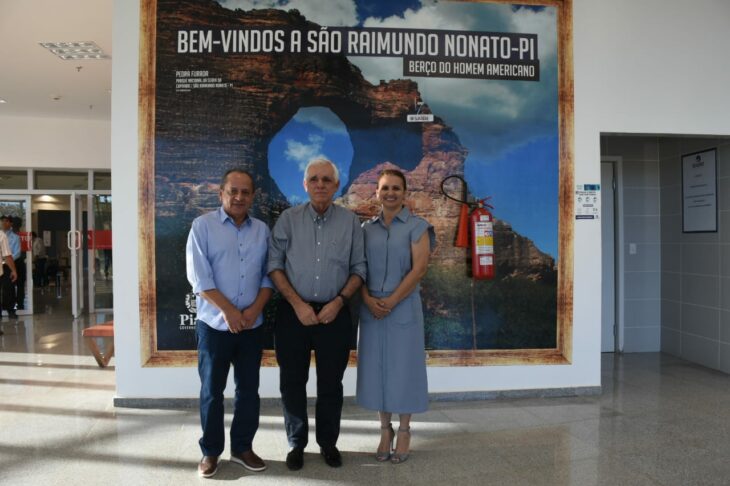 O deputado estadual Felipe Sampaio, a secretária de de Desenvolvimento Regional, Abastecimento, Mineração e Energias Renováveis do Piauí, Paula Jeanne, também participaram da visita.