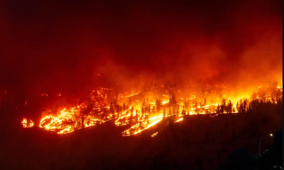 Uma grande nuvem de fumaça permanece sobre a cidade de Kelown, localizada a 150 km ao sul de Shuswap, com cerca de 150 mil habitantes, dos quais milhares tiveram que abandonar suas casas.