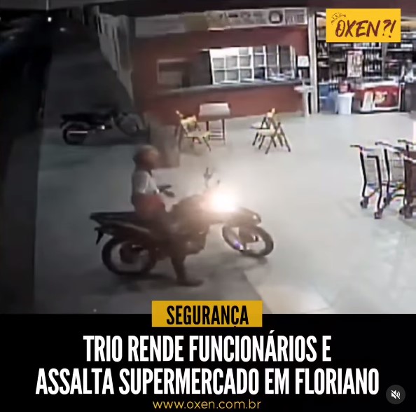Um trio dividido em duas motocicletas assaltou na noite desta sexta-feira, o supermercado Garoto localizado na Rua Emídio Gabriel, no centro de Floriano. O bando desce das motocicletas, rende funcionários e vão direto para os caixas. A ação durou poucos minutos, mas foi suficiente para funcionários entrarem em pânico. Após a ação, o trio deixa o local com destino desconhecido. Em contato com a direção do supermercado, apesar do susto, o prejuízo financeiro pode não ter sido tão grande. "O dinheiro não fica no supermercado", disse uma fonte ao Portal Oxen.