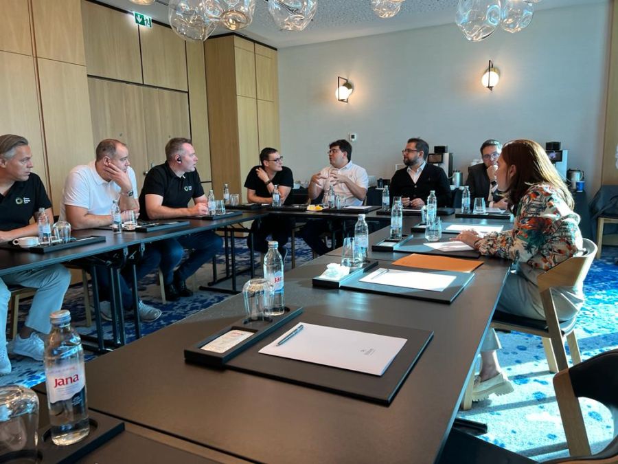 Antes da ida ao Porto de Krt, o governador Rafael Fonteles esteve reunido com os empresários Pedro Vaquer, Antônio Rodriguez e Roberto Devienne, da Solatio Energia, e Bart Biebuyck, Mário Reinisch, Mindaugas Zakaras e Tobias Puklavec, da Green Energy Park. São empresas parceiras do Piauí no grande projeto de produção de hidrogênio verde e derivados.
