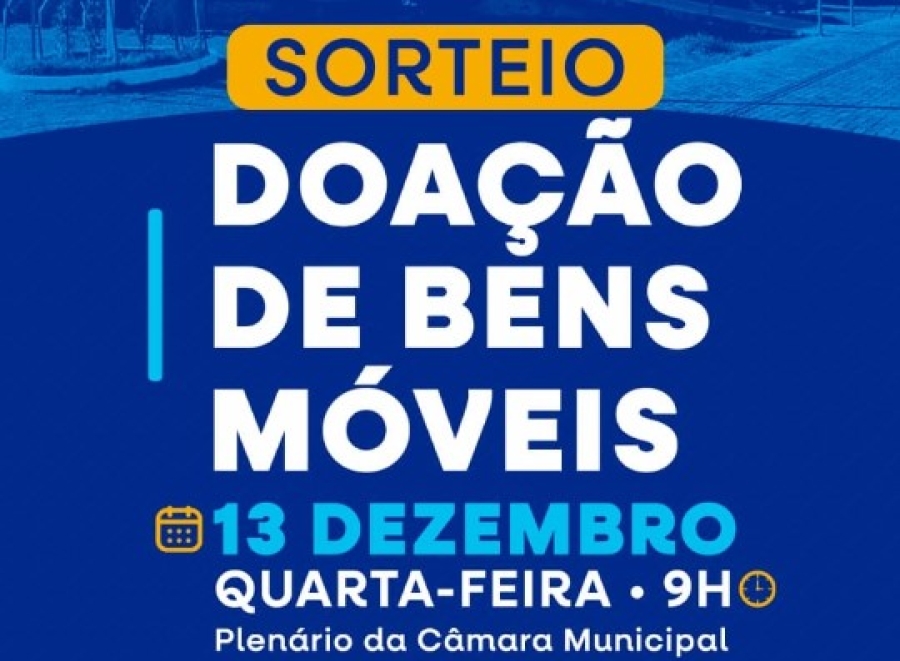 A Câmara Municipal de Floriano definiu a data de sorteio dos lotes de bens móveis disponibilizados em edital para doação a entidades e instituições sem fins lucrativos de Floriano: será na próxima quarta-feira, 13 de dezembro, no plenário da casa, na presença de vereadores, servidores da Câmara, representantes das entidades inscritas e convidados.