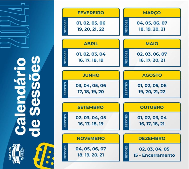 O ano legislativo de 2024 terá início dia 01 de fevereiro, com a sessão de abertura da primeira quinzena de sessões do mês, quando, tradicionalmente, o prefeito municipal leva sua mensagem até a casa, fazendo uma espécie de prestação de contas das ações realizadas no ano anterior e de planejamento para execução no ano em curso.