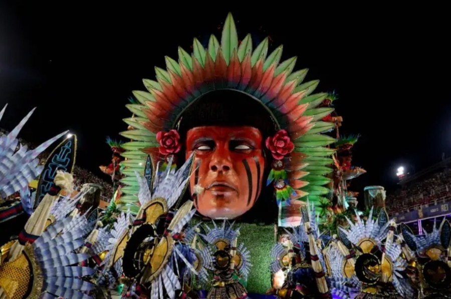 A cultura indígena também foi tema do desfile da Grande Rio, a quarta a pisar na avenida do samba. O enredo Nosso Destino É Ser Onça abordou a mitologia tupinambá.