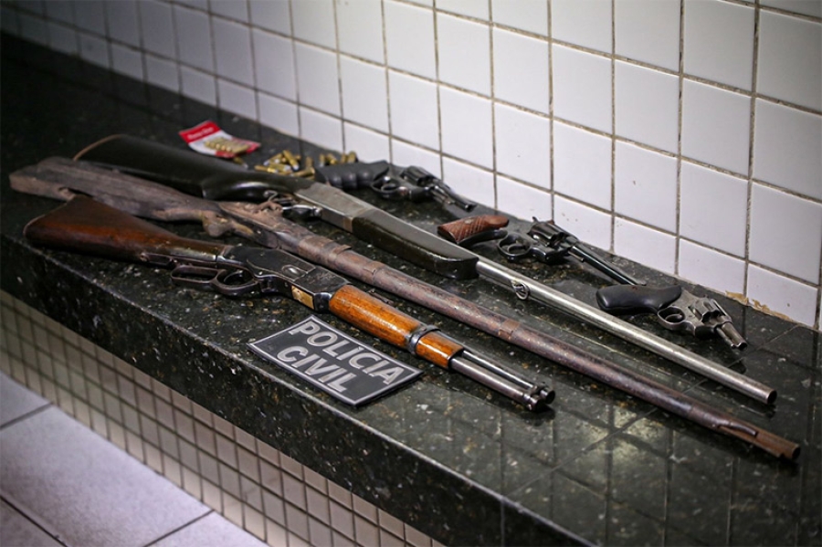 Foram apreendidos três revólveres, uma espingarda, um rifle e uma bate-bucha. A investigação do Deop apontou que uma munição do calibre 44 (rifle), o cartucho era comercializado a R$ 35.
