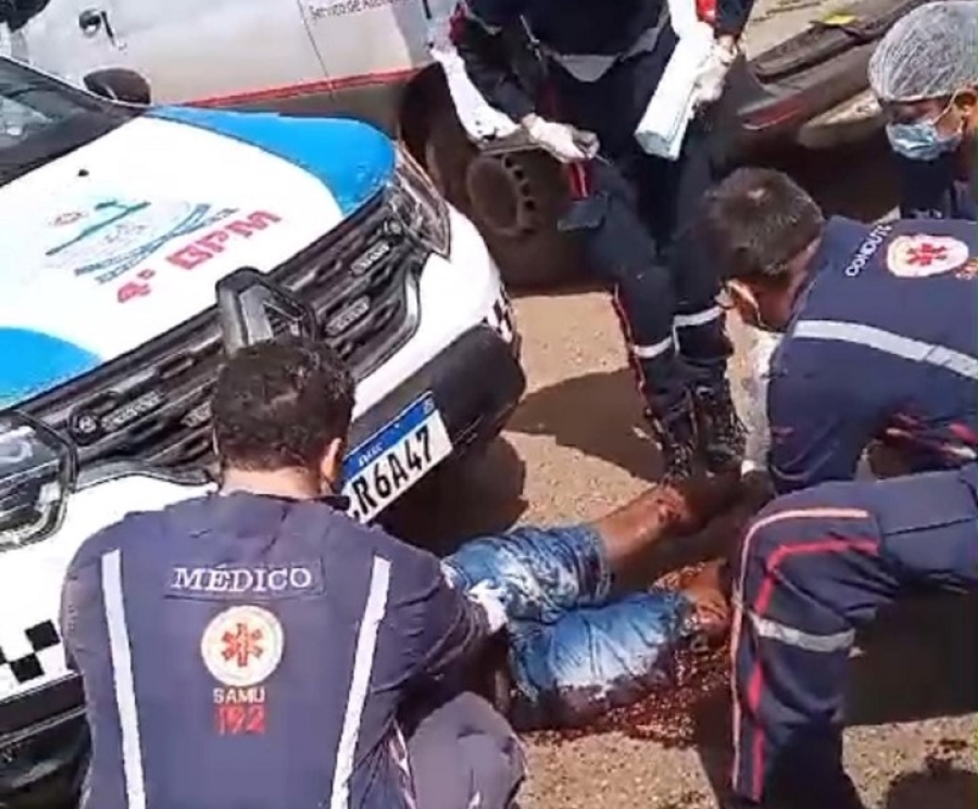 "Por volta de 9h30min, a vítima que sofreu a tentativa de roubo por parte do indivíduo que estava com uma pedra, açoitando populares que estavam na Praça do Hospital Regional Justino Luz. A guarnição identificou o indivíduo que estava em posse de uma pedra. O homem ao ver a aproximação policial ameaçou a guarnição e causou dano a um veículo que estava próximo. Um dos policiais tentando se defender da injusta agressão recebida efetuou dois disparos que atingiram a perna do agressor e foi suficiente para paralisar a grave ameaça", informou o comandante.