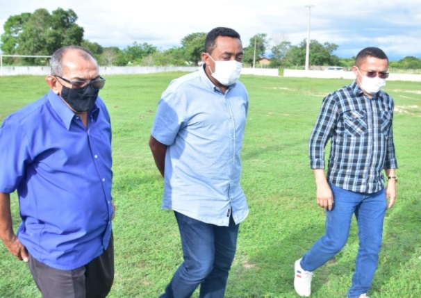 O prefeito esteve acompanhado do secretário de Cultura, Reginaldo Monteiro e do vereador Salomão Holanda. A construção do campo do povoado L3 é uma conquista do prefeito Joel Rodrigues junto ao deputado estadual, Dr. Francisco Costa, através de emenda parlamentar de âmbito estadual e parceria do município, que realizou a doação do terreno.