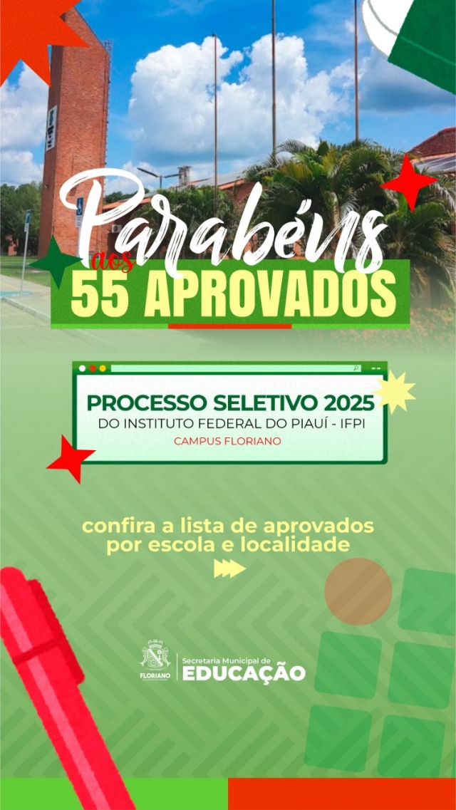 A Prefeitura de Floriano, através da Secretaria Municipal de Educação, parabeniza todos os aprovados e suas famílias, reafirmando o compromisso de continuar transformando a educação no município.