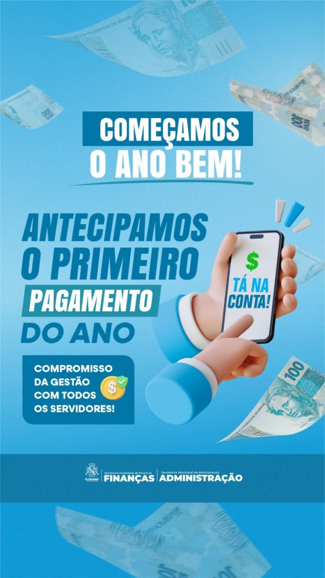 Seguindo um posicionamento que se tornou marca registrada do Poder Público Municipal, a Prefeitura de Floriano já começou o ano de 2025 antecipando o pagamento salarial de seus servidores para esta sexta-feira, 31 de janeiro. O salário na conta confirma o empenho da Prefeitura não só em valorizar os servidores, como também satisfazer as necessidades deles no cumprimento de seus compromissos financeiros.