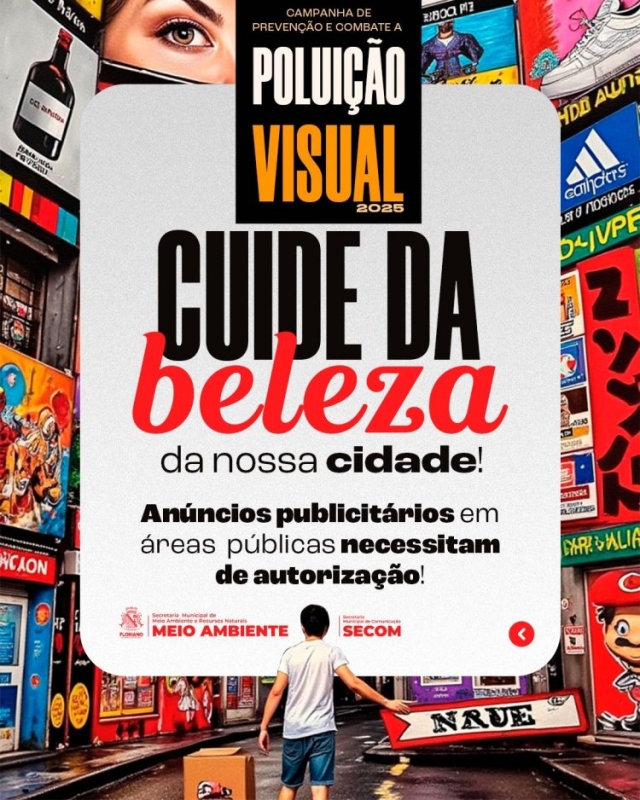 De acordo com a SEMAN, são exemplos de poluição visual: faixas e placas em área de preservação permanente ou árvores, anúncios em postes ou vias públicas e descarte incorreto de lixo. Em caso de dúvidas ou denúncias, o interessado pode procurar a Secretaria Municipal de Meio Ambiente ou registrar sua manifestação através do canal da Ouvidoria-Geral de Floriano pelo número (89)99448-2590.