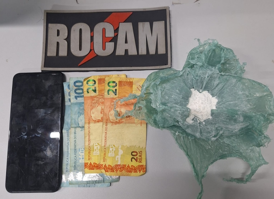 A equipe realizou acompanhamento tático e ao realizar a busca pessoal, foram localizados: um invólucro com cerca de 20g de substância análoga à cocaína, R$ 240,00 em espécie, uma motocicleta Honda CG 125 FAN, cor preta.