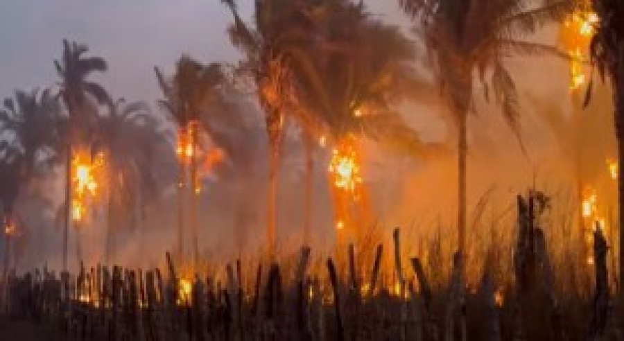 Focos de incêndio atingem a zona rural de Nazária, no Piauí, há uma semana. Segundo moradores, o fogo começou na segunda-feira (1) no acampamento Clóvis Moura. Nesta sexta (5), imagens mostram novos focos no povoado Santo Antônio.